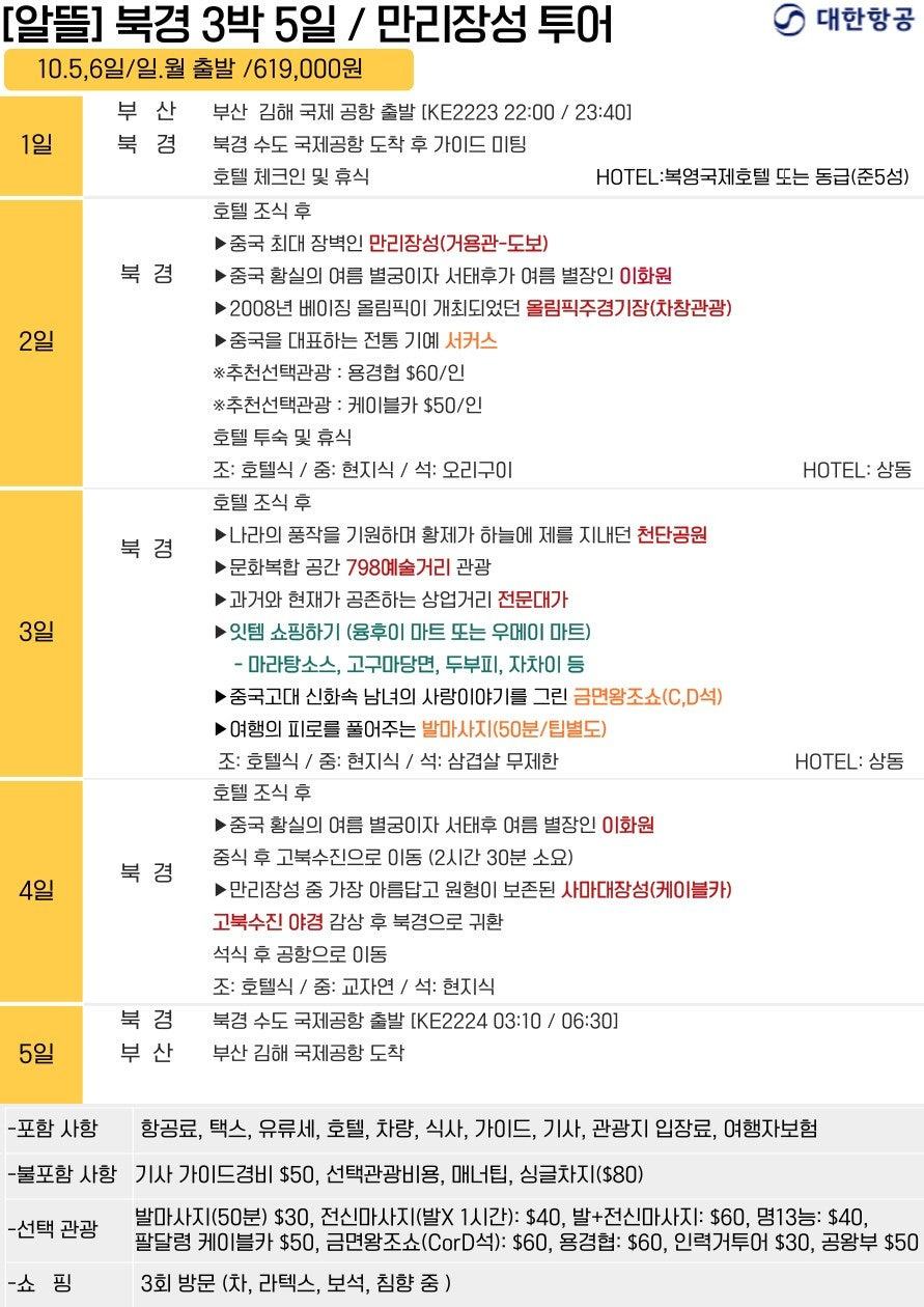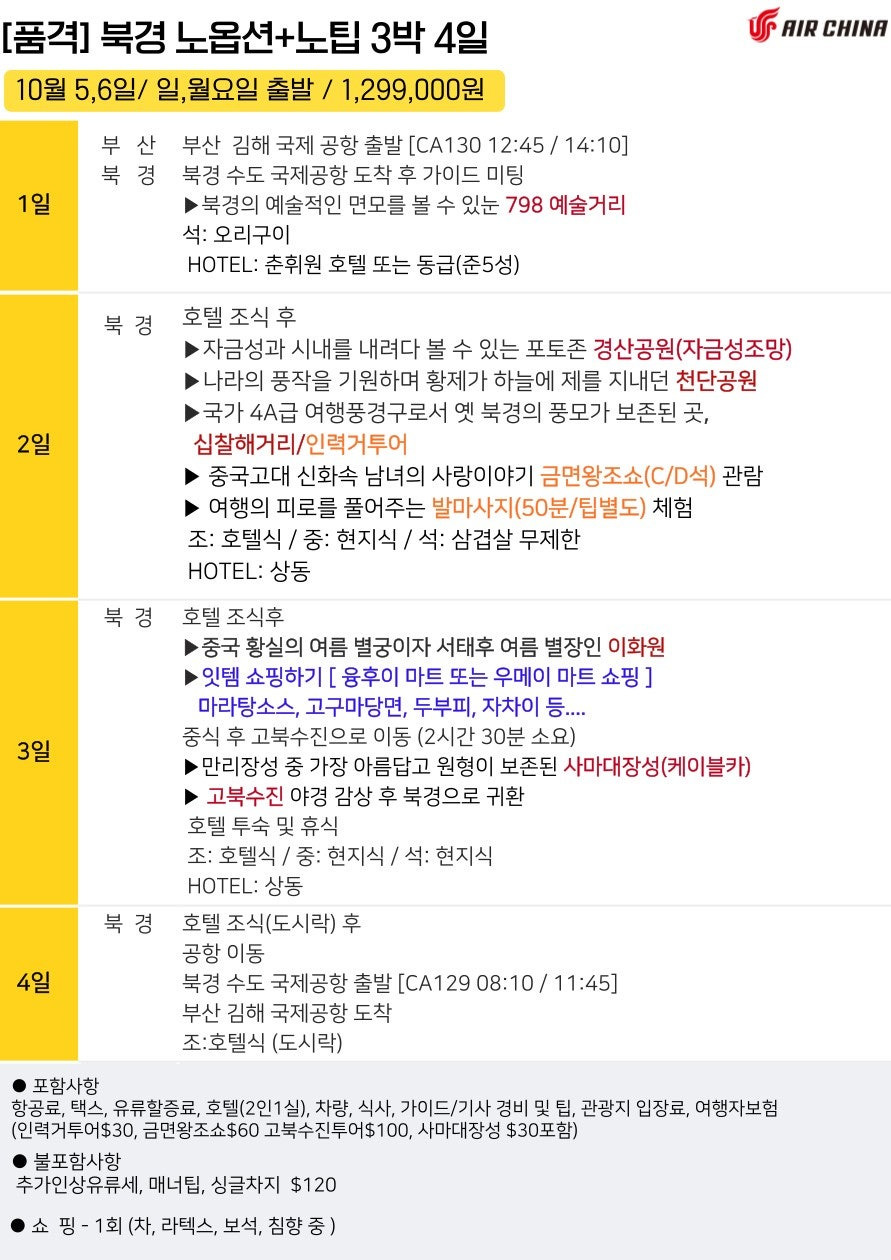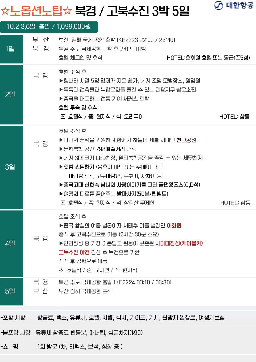 ✔ [알뜰] 북경 5일 (대한항공 KE)