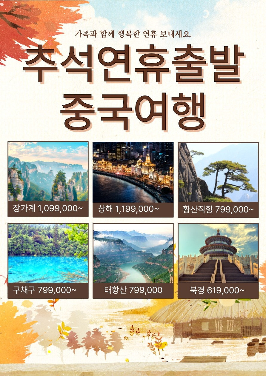 올 추석 연휴, 중국 전역 인기 여행지를 특가로 만나보세요 ✈️