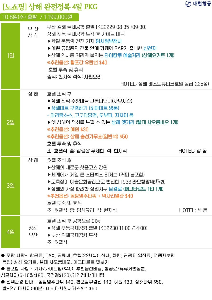 ✔ [노쇼핑] 상해 4일 (대한항공 KE)
