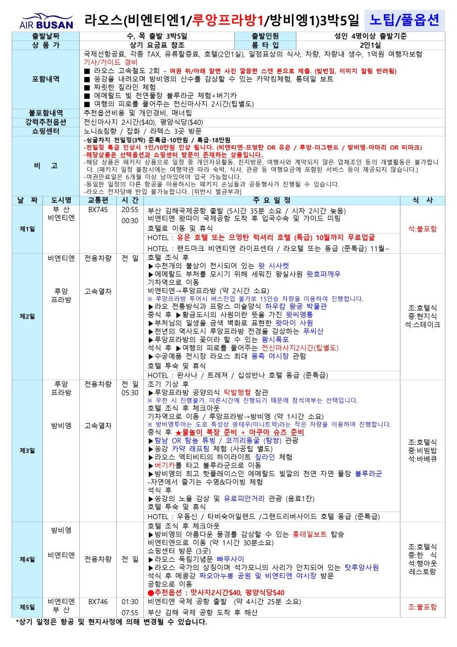 #라오스여행 #비엔티엔 #방비엥 #루앙프라방 #부산출발 #에어부산 #라오스직항 #노팁노옵션 #라오스특가 #라오스패키지